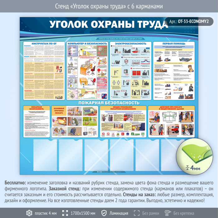 Стенд «Уголок охраны труда» с 6 карманами (OT-33-ECONOMY2) в Омске купить