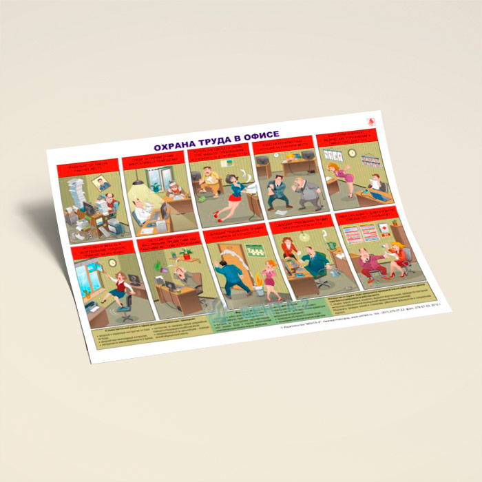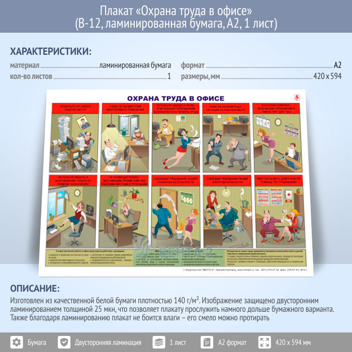 Плакат «Охрана труда в офисе» (В-12, ламинированная бумага, А2, 1 лист) в Омске купить