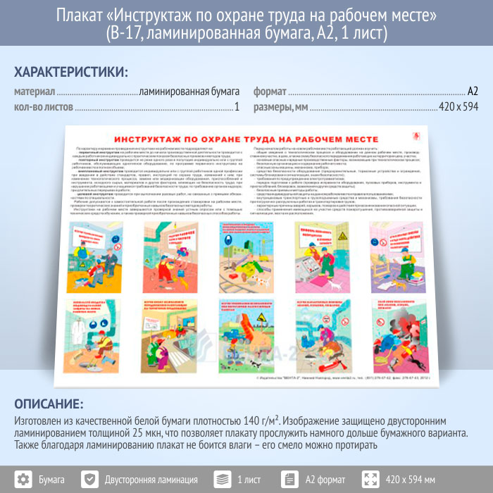 Плакат «Инструктаж по охране труда на рабочем месте» (В-17, ламинированная бумага, А2, 1 лист) в Омске купить