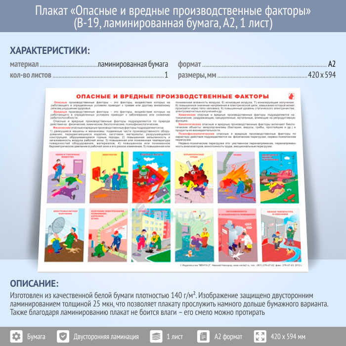 Плакат «Опасные и вредные производственные факторы» (В-19, ламинированная бумага, А2, 1 лист) в Омске купить