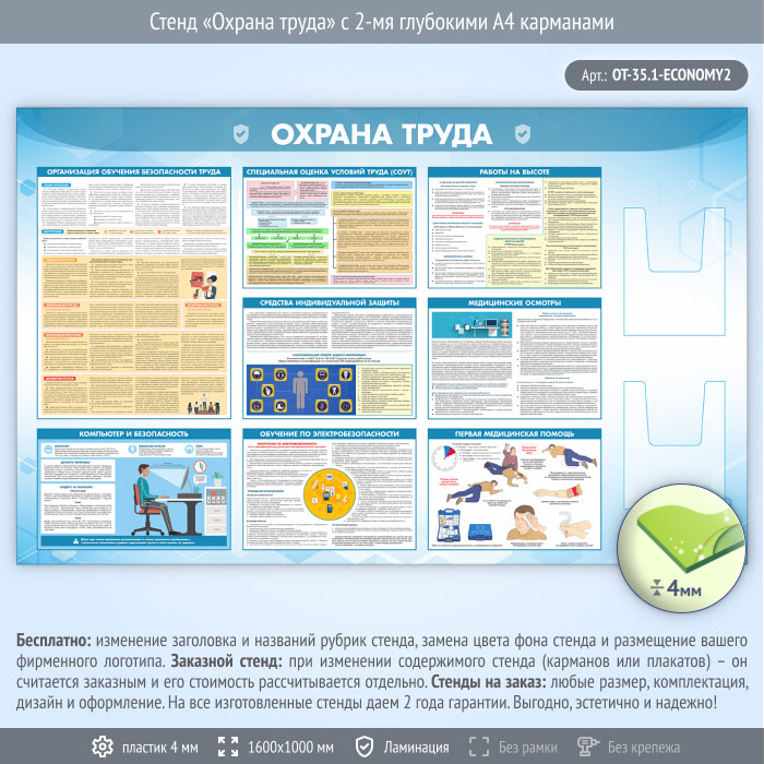 Стенд «Охрана труда» с 2-мя глубокими А4 карманами (OT-35.1-ECONOMY2) в Омске купить