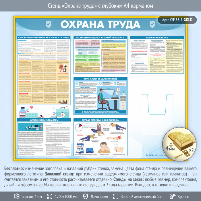 Стенд «Охрана труда» с глубоким А4 карманом (OT-35.2-GOLD) в Омске купить