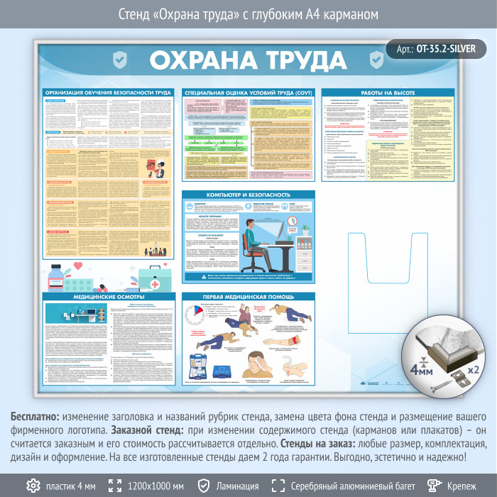 Стенд «Охрана труда» с глубоким А4 карманом (OT-35.2-SILVER) в Омске купить