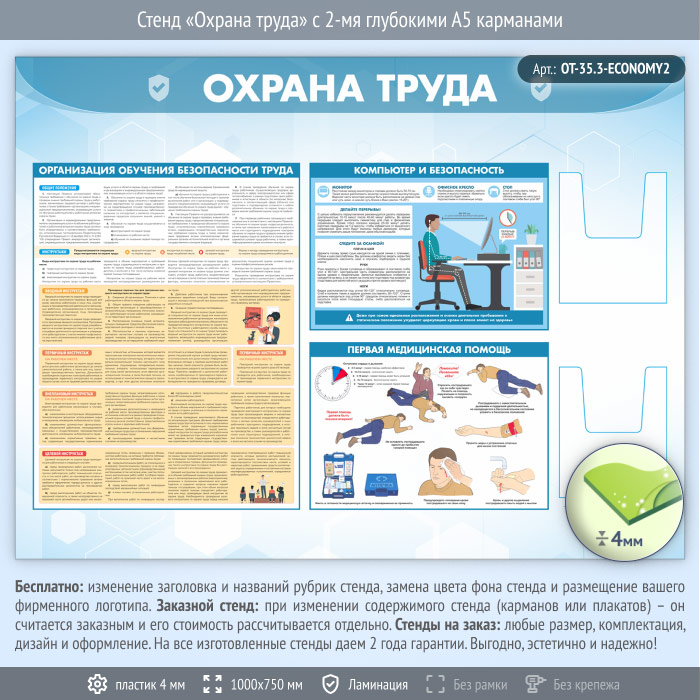 Стенд «Охрана труда» с 2-мя глубокими А5 карманами (OT-35.3-ECONOMY2) в Омске купить