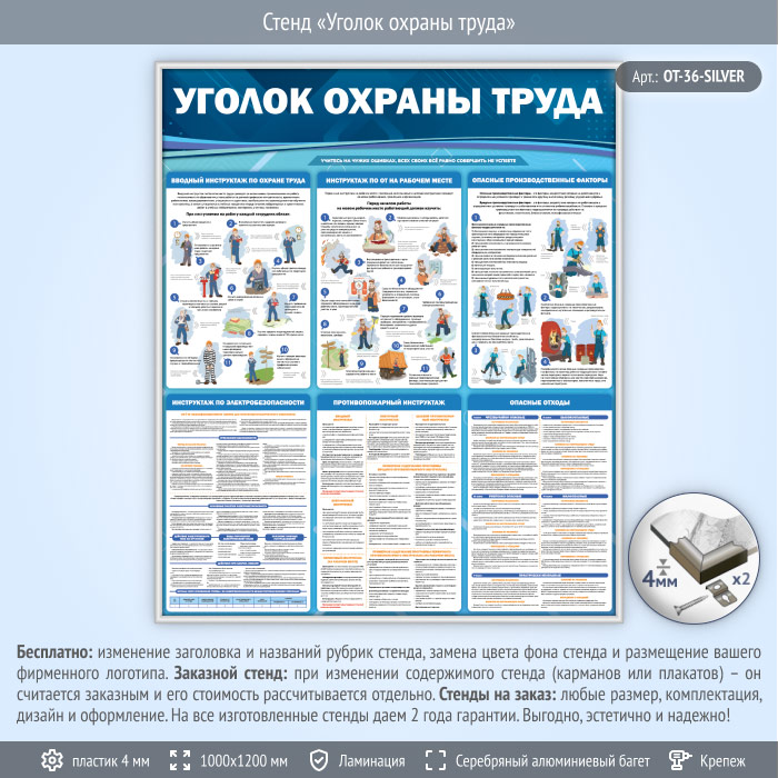 Стенд «Уголок охраны труда» (OT-36-SILVER) в Омске купить
