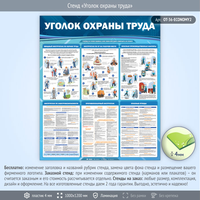 Стенд «Уголок охраны труда» (OT-36-ECONOMY2) в Омске купить