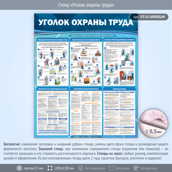 Стенд «Уголок охраны труда» (OT-36-SUPERSLIM) в Омске купить