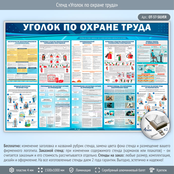 Стенд «Уголок по охране труда» (OT-37-SILVER) в Омске купить