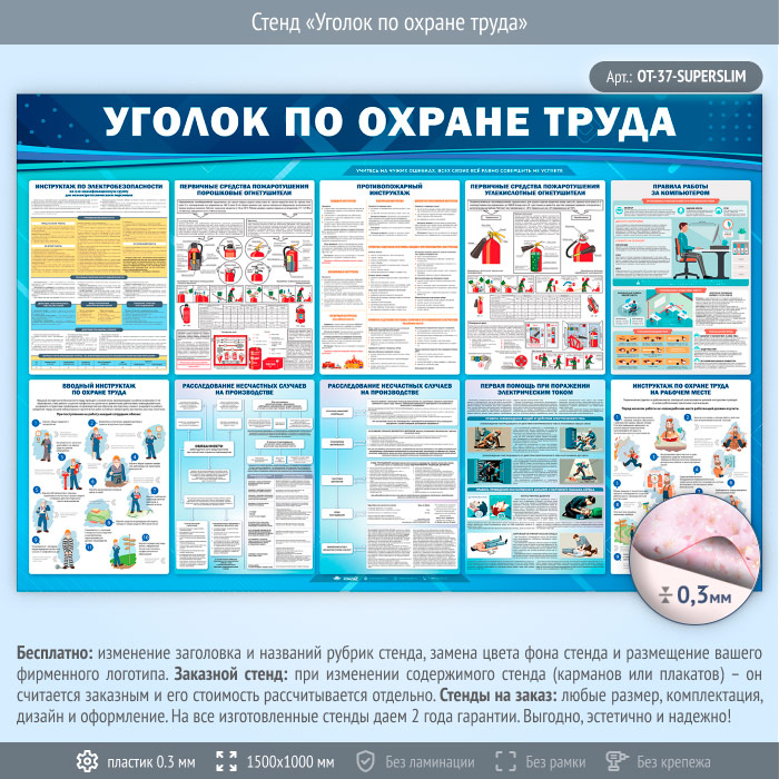 Стенд «Уголок по охране труда» (OT-37-SUPERSLIM) в Омске купить