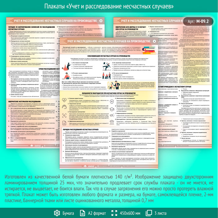 Плакаты «Учет и расследование несчастных случаев» (М-09.2, ламинированная бумага, А2, 3 листа) в Омске купить