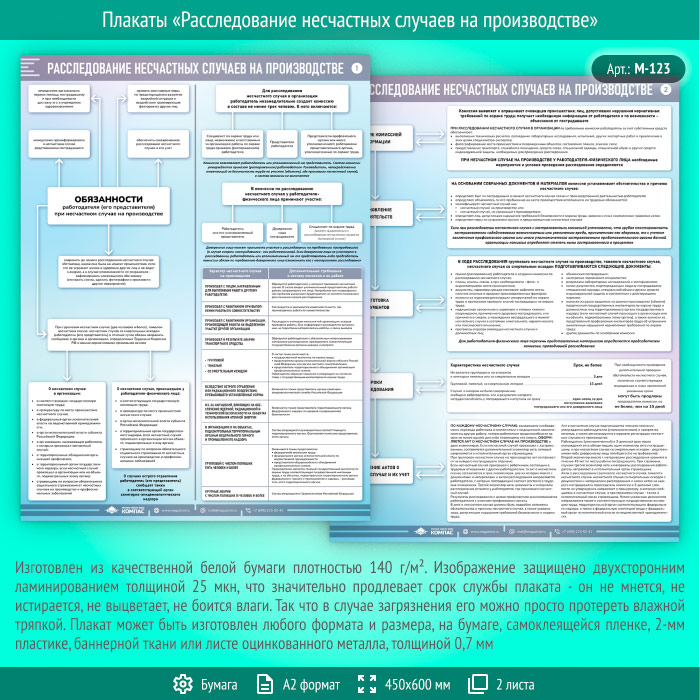 Плакаты «Расследование несчастных случаев на производстве» (М-123, ламинированная бумага, А2, 2 листа) в Омске купить