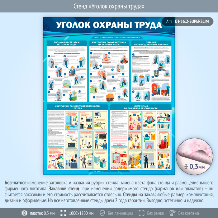 Стенд «Уголок охраны труда» (OT-36.2-SUPERSLIM) в Омске купить