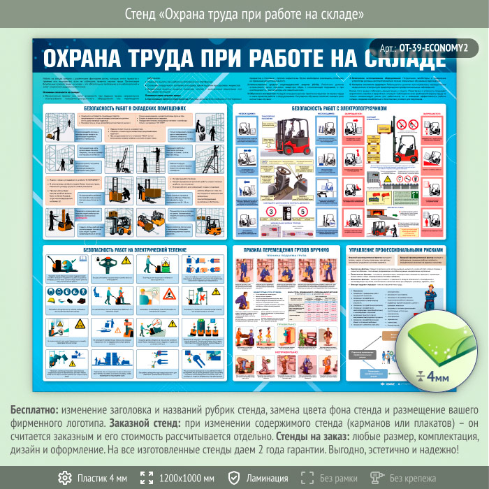 Стенд «Охрана труда при работе на складе» (OT-39-ECONOMY2) в Омске купить