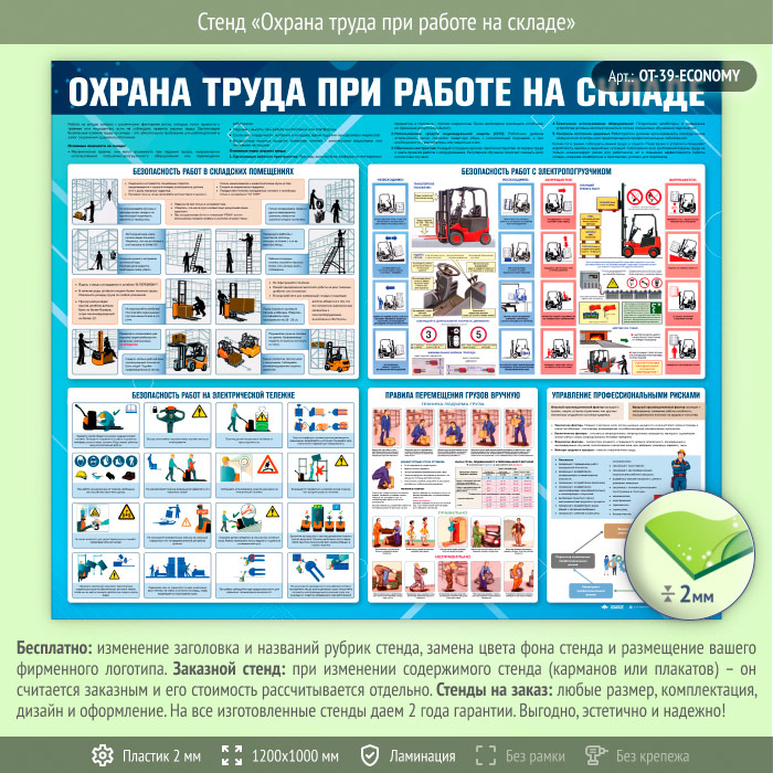 Стенд «Охрана труда при работе на складе» (OT-39-ECONOMY) в Омске купить