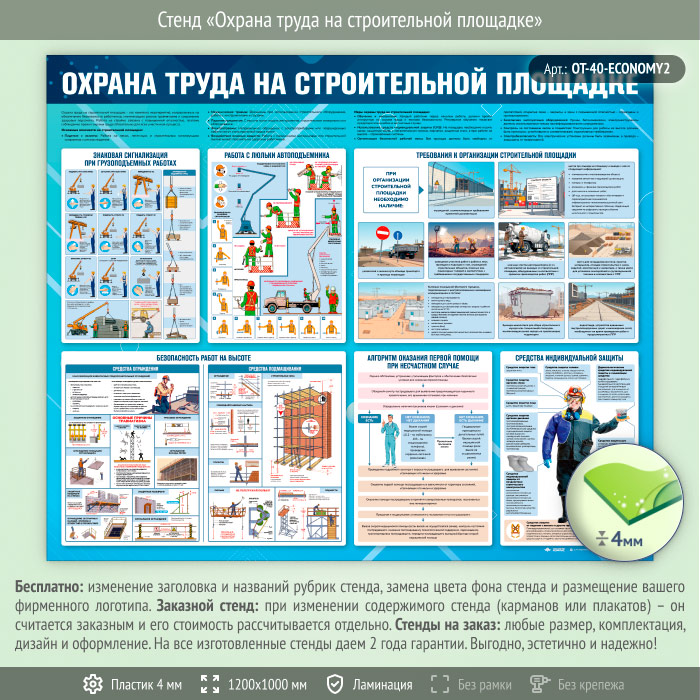 Стенд «Охрана труда на строительной площадке» (OT-40-ECONOMY2) в Омске купить