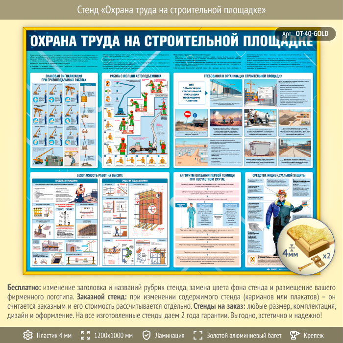 Стенд «Охрана труда на строительной площадке» (OT-40-GOLD) в Омске купить