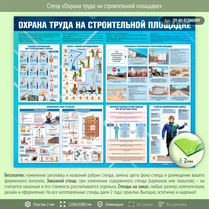 Стенд «Охрана труда на строительной площадке» (OT-40-ECONOMY) в Омске купить