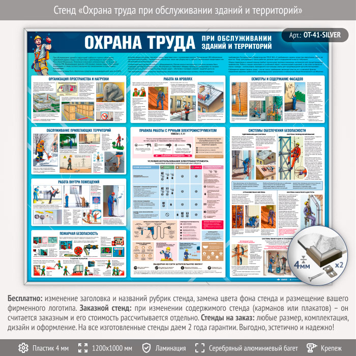 Стенд «Охрана труда при обслуживании зданий и территорий» (OT-41-SILVER) в Омске купить