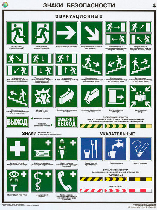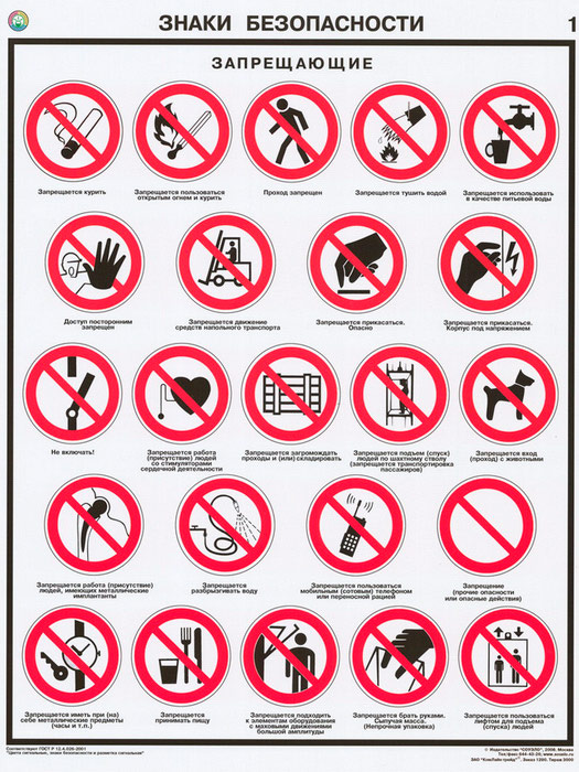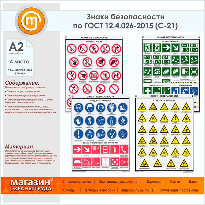 Плакаты «Знаки безопасности по ГОСТ 12.4.026-2015» (С-21, ламинированная бумага, А2, 4 листа) в Омске купить