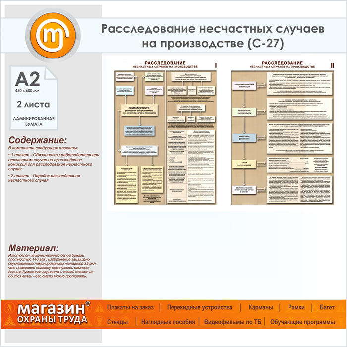 Плакаты «Расследование несчастных случаев на производстве» (С-27, ламинированная бумага, А2, 2 листа) в Омске купить