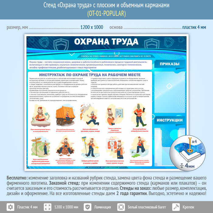 Стенд «Охрана труда» с плоским и объемным карманами (OT-01-POPULAR) в Омске купить