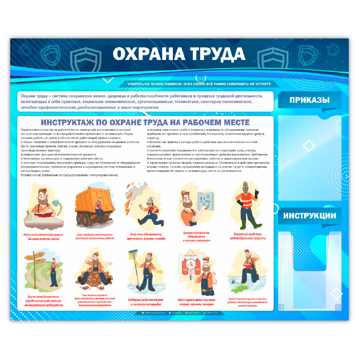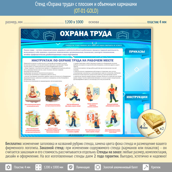 Стенд «Охрана труда» с плоским и объемным карманами (OT-01-GOLD) в Омске купить