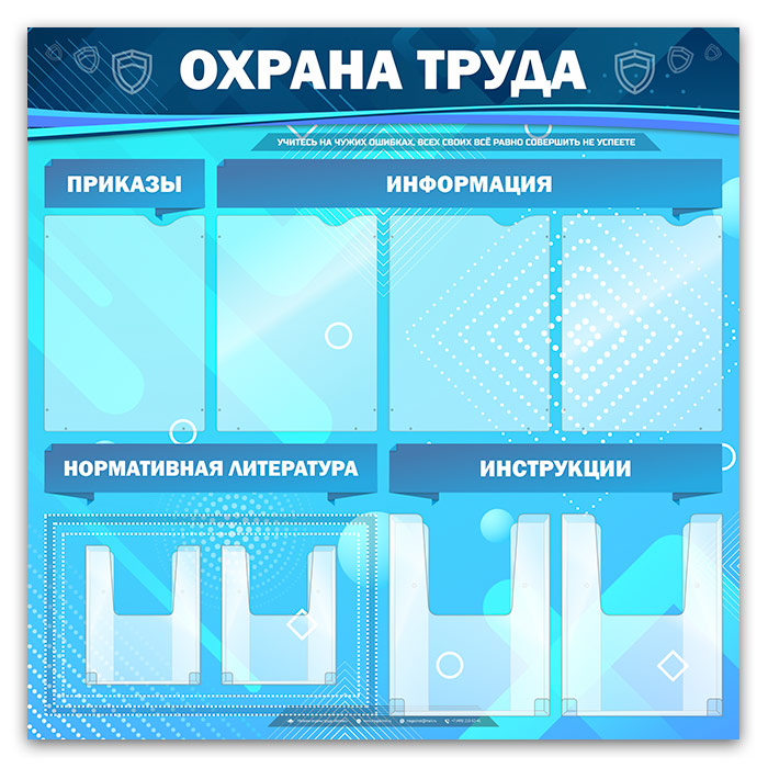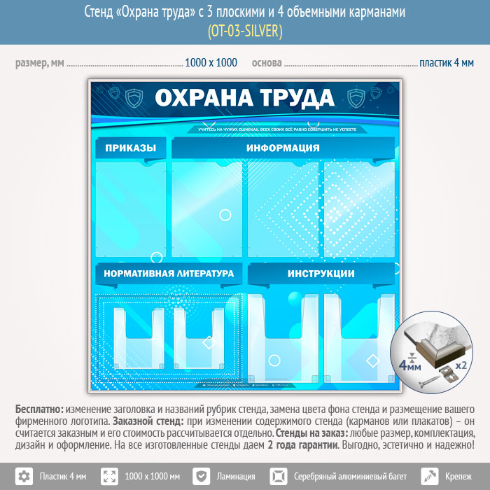 Стенд «Охрана труда» с 4 плоскими и 4 объемными карманами (OT-03-SILVER) в Омске купить