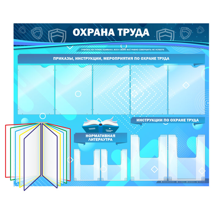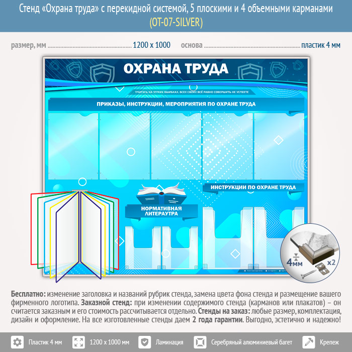 Стенд «Охрана труда» с перекидной системой, 5 плоскими и 4 объемными карманами (OT-07-SILVER) в Омске купить