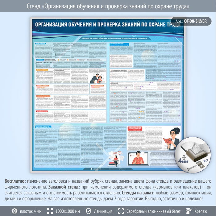 Стенд «Организация обучения и проверка знаний по охране труда» (OT-08-SILVER) в Омске купить