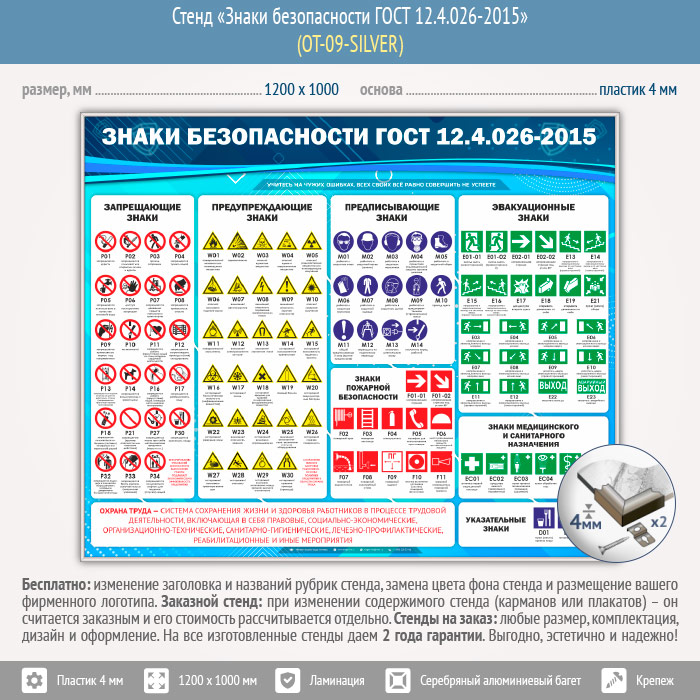 Стенд «Знаки безопасности ГОСТ 12.4.026-2015» (OT-09-SILVER) в Омске купить