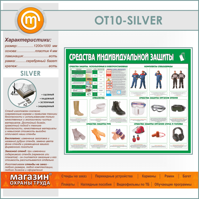 Стенд «Средства индивидуальной защиты» (OT-10-SILVER) в Омске купить