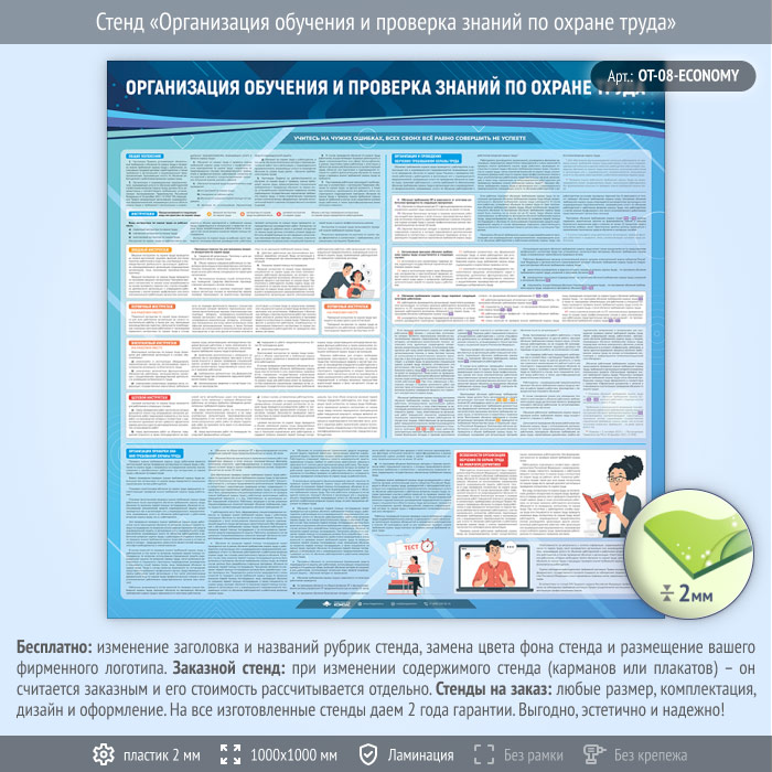 Стенд «Организация обучения и проверка знаний по охране труда» (OT-08-ECONOMY) в Омске купить