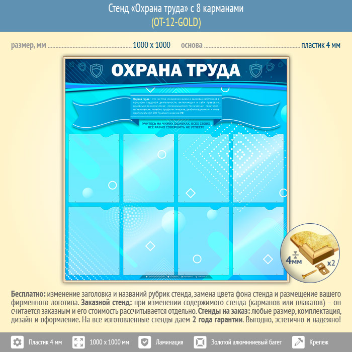Стенд «Охрана труда» с 8 карманами (OT-12-GOLD) в Омске купить