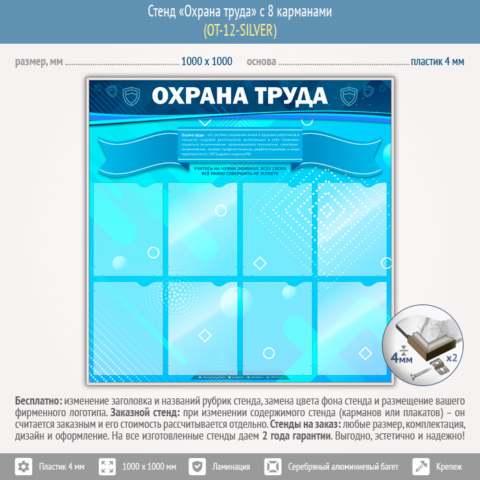 Стенд «Охрана труда» с 8 карманами (OT-12-SILVER) в Омске купить
