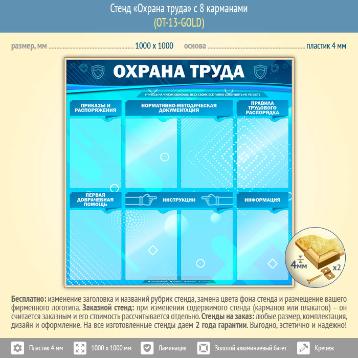 Стенд «Охрана труда» с 8 карманами (OT-13-GOLD) в Омске купить