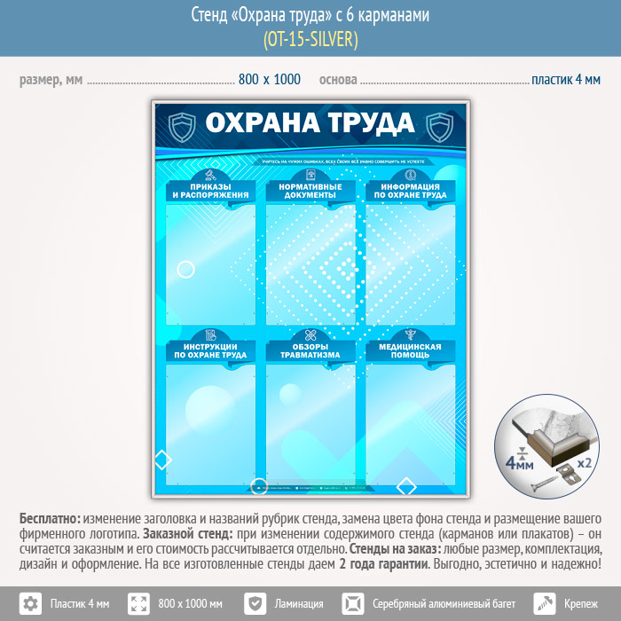 Стенд «Охрана труда» с 6 карманами (OT-15-SILVER) в Омске купить