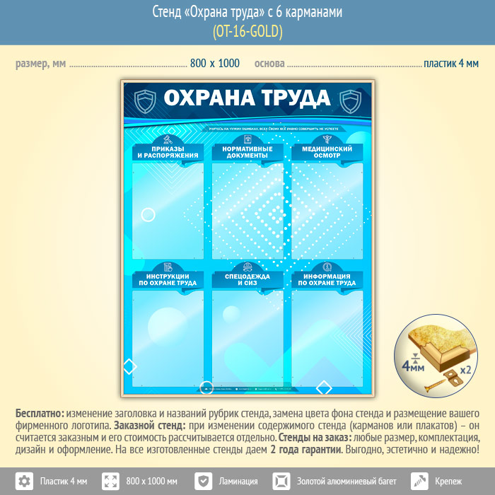 Стенд «Охрана труда» с 6 карманами (OT-16-GOLD) в Омске купить