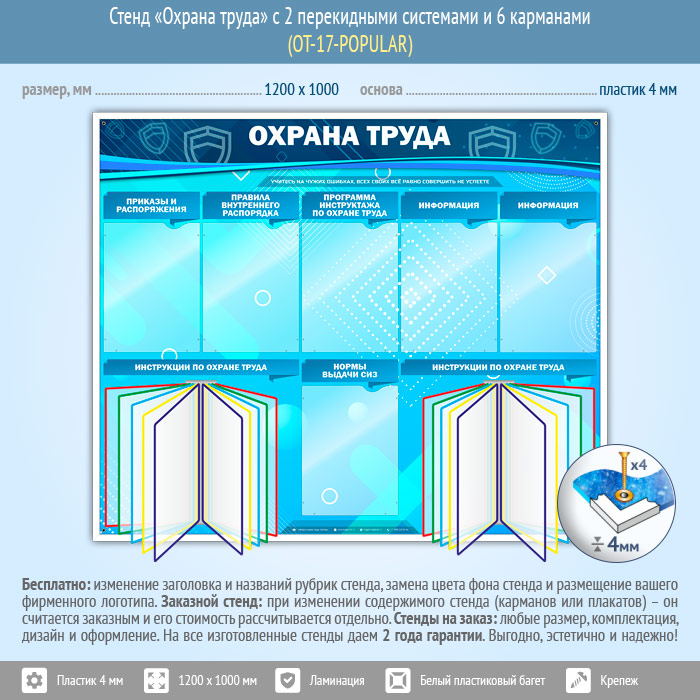 Стенд «Охрана труда» с 2 перекидными системами и 6 карманами (OT-17-POPULAR) в Омске купить