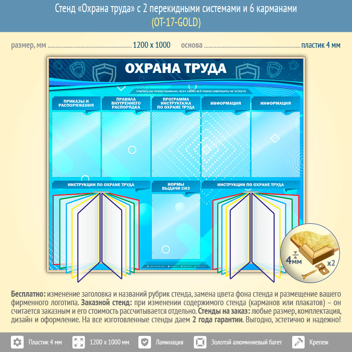 Стенд «Охрана труда» с 2 перекидными системами и 6 карманами (OT-17-GOLD) в Омске купить