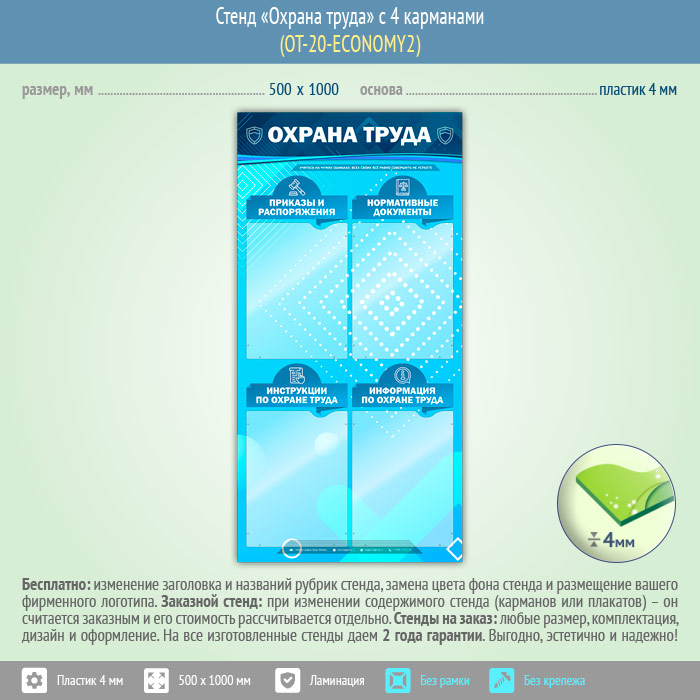Стенд «Охрана труда» с 4 карманами (OT-20-ECONOMY2) в Омске купить