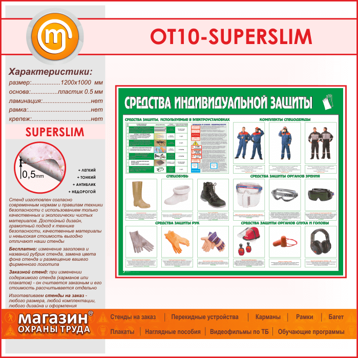 Стенд «Средства индивидуальной защиты» (OT-10-SUPERSLIM) в Омске купить