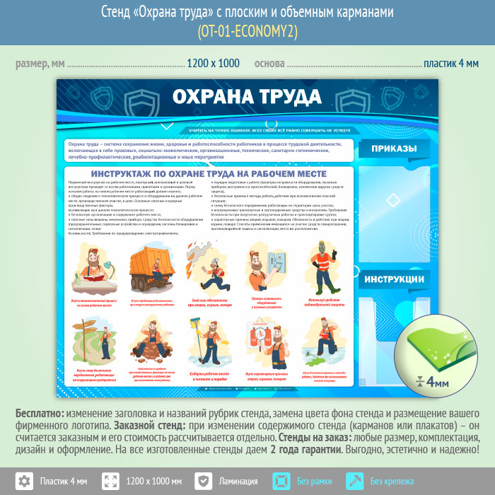 Стенд «Охрана труда» с плоским и объемным карманами (OT-01-ECONOMY2) в Омске купить