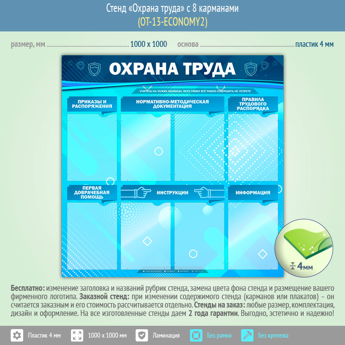 Стенд «Охрана труда» с 8 карманами (OT-13-ECONOMY2) в Омске купить