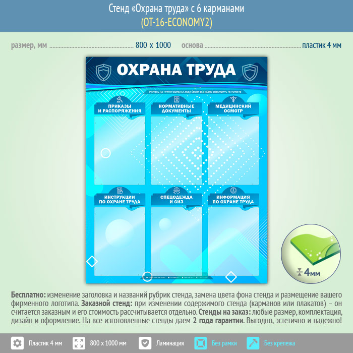 Стенд «Охрана труда» с 6 карманами (OT-16-ECONOMY2) в Омске купить