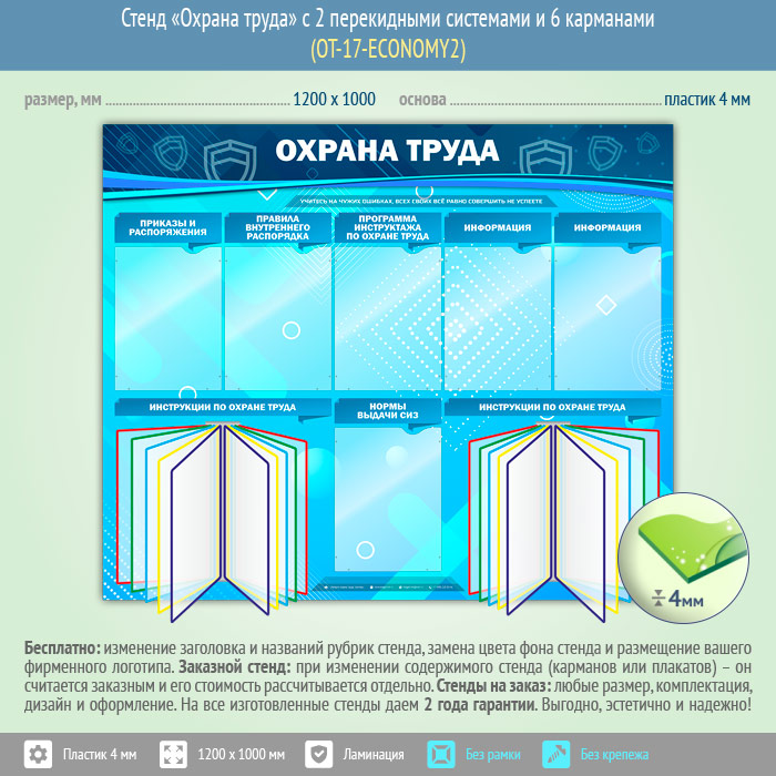 Стенд «Охрана труда» с 2 перекидными системами и 6 карманами (OT-17-ECONOMY2) в Омске купить