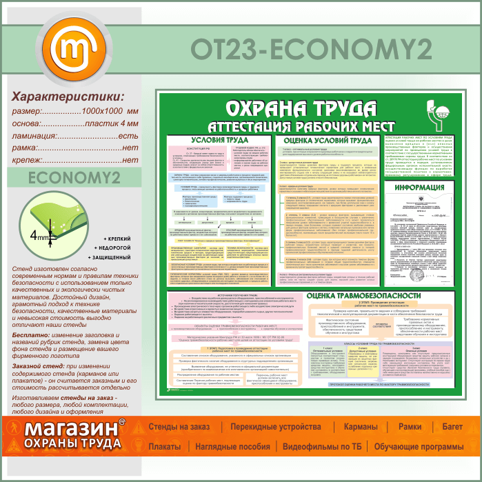 Стенд «Охрана труда. Аттестация рабочих мест» с карманом (OT-23-ECONOMY2) в Омске купить
