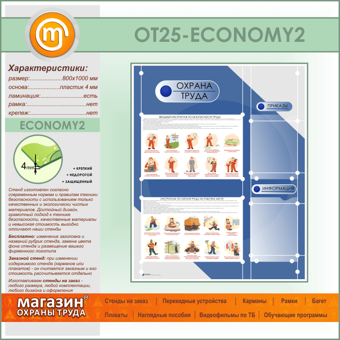Стенд «Охрана труда» с 2 плоскими карманами (OT-25-ECONOMY2) в Омске купить