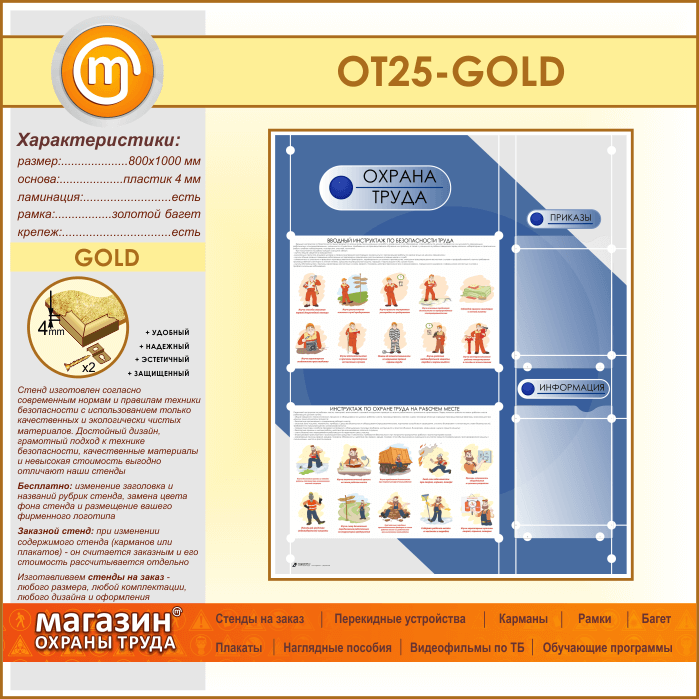 Стенд «Охрана труда» с 2 плоскими карманами (OT-25-GOLD) в Омске купить
