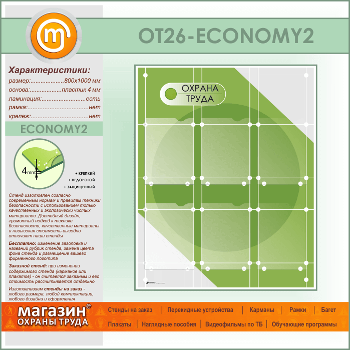 Стенд «Охрана труда» с 6 плоскими карманами (OT-26-ECONOMY2) в Омске купить