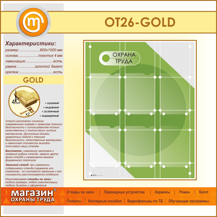 Стенд «Охрана труда» с 6 плоскими карманами (OT-26-GOLD) в Омске купить
